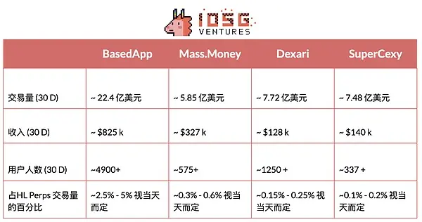 A onda de aplicativos móveis nativos baseados em HL já começou: BasedApp, Mass.Money, Dexari, Supercexy. Esses aplicativos têm um volume de transações diário de 50 mil dólares (receita mensal recorrente de 1,5 milhão de dólares), representando cerca de 3-6% do volume de negociação de contratos perpétuos HL, com diferentes grupos-alvo (usuários nativos de criptomoedas, usuários de varejo Web2, traders profissionais).