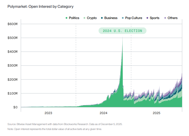 Fonte da imagem: Contratos em aberto na Polymarket, Bitwise