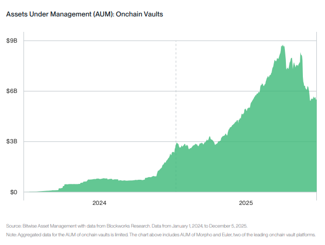 O relatório da Bitwise descreve os cofres on-chain (Onchain Vaults) como uma “ETF 2.0”, sendo que esses fundos de investimento geridos por terceiros na blockchain, após a correção de mercado de 2025, entrarão numa fase de maturidade.