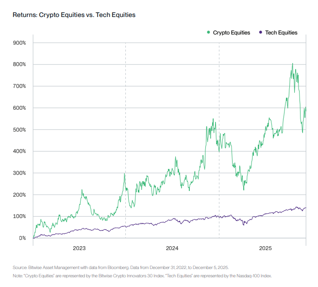 Fonte da imagem: Comparação do retorno de ações de conceitos de criptomoedas e ações de tecnologia, Bitwise