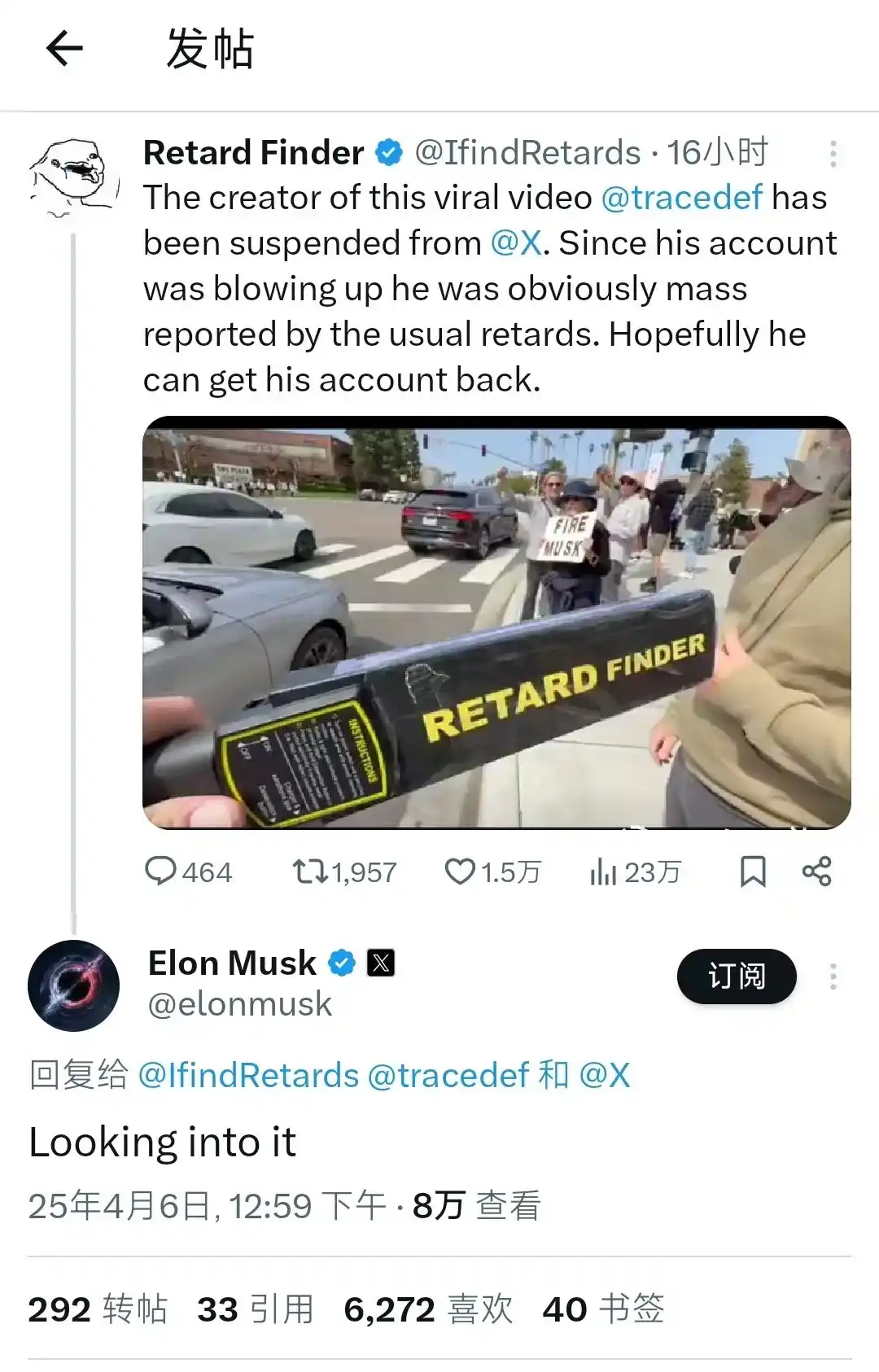 С начала марта, когда Маск начал关注 и взаимодействовать с Retard Finder, у этого аккаунта было всего лишь около двухсот тысяч подписчиков, а сейчас их количество быстро возросло до почти семисот тысяч, с ежедневным приростом подписчиков около 20 тысяч, что значительно превышает темпы роста аналогичных политических сатирических аккаунтов (обычно 0,3 до 0,8 тысяч в день).