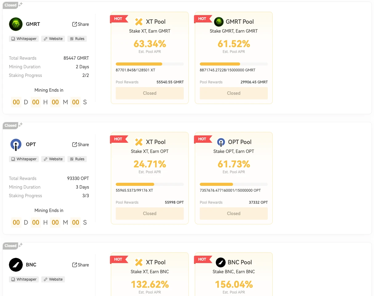 Получение ранних токенов: XT Launchpool позволяет пользователям участвовать в отобранных фондах, ставя на кон существующие активы (такие как XT, ETH, USDT), и зарабатывать их вознаграждения до публичного上市 нового токена, обычно по скидочной цене.