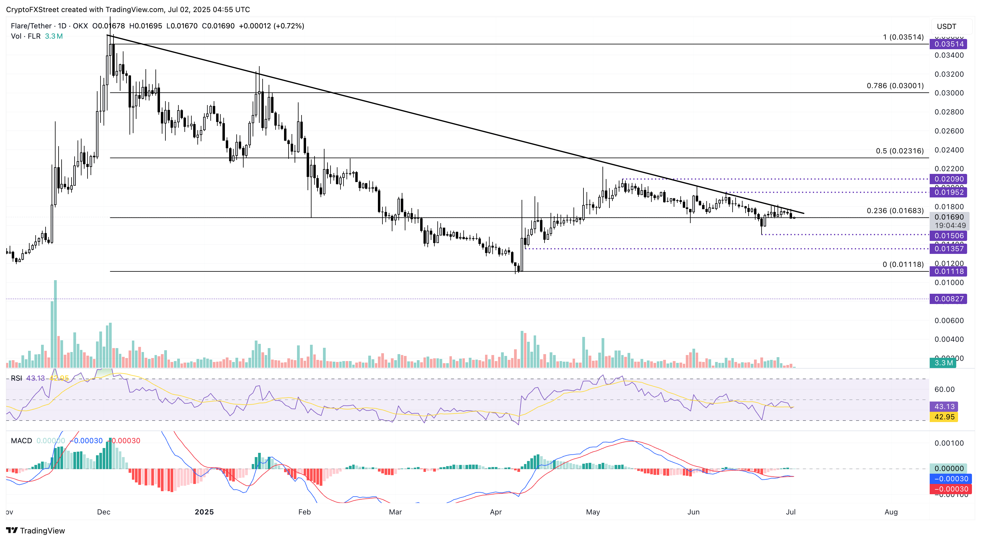 Прогноз цены Flare (FLR): программа вознаграждений для активов запущена вяло, технические перспективы имеют тенденцию к падению