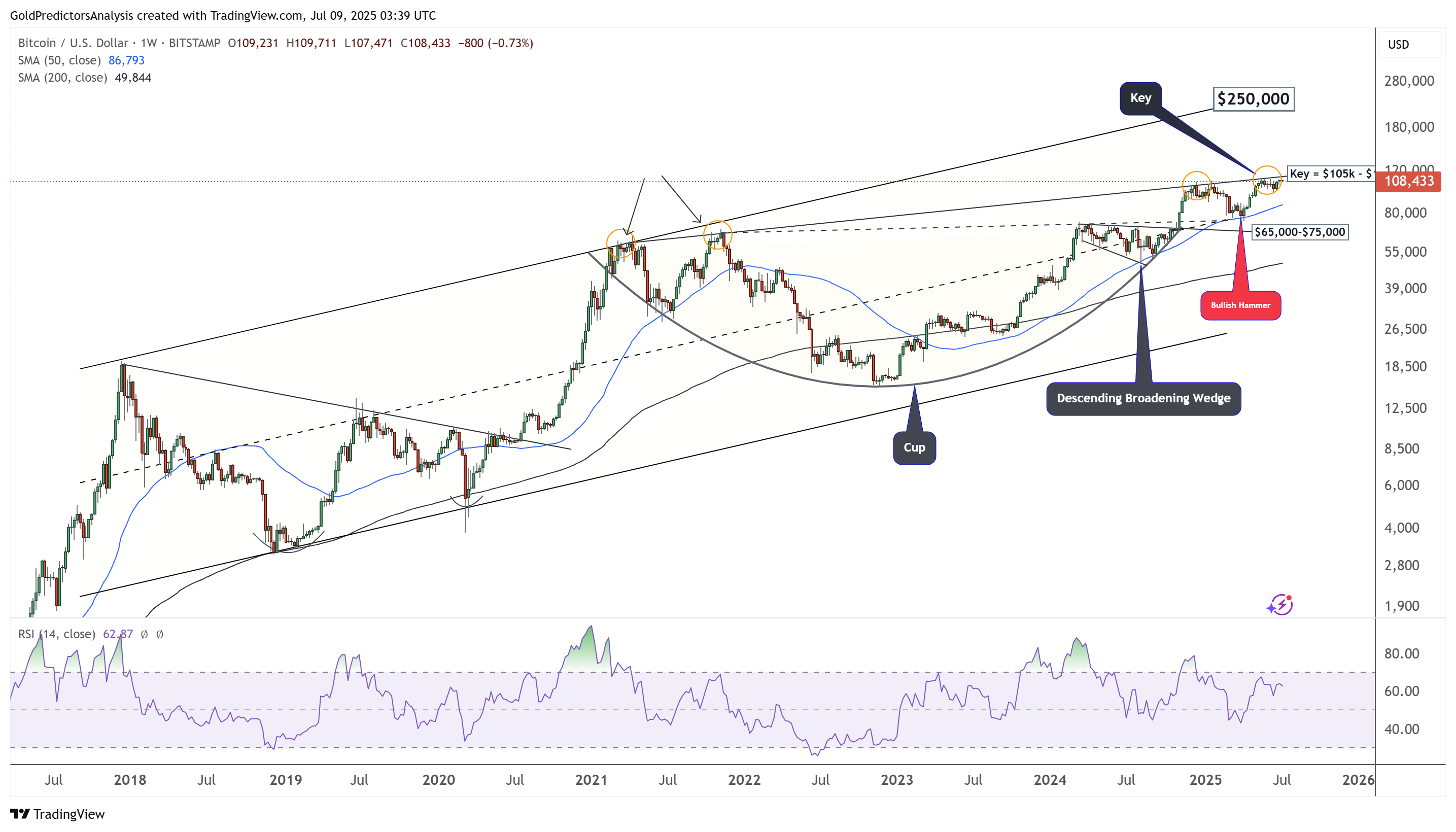 Однако, если цена突破 11,5 万 долларов, это может предвещать начало сильного долгосрочного памп-тренда. RSI остается выше 60, что показывает, что в будущем еще есть место для роста. Текущая формация демонстрирует долгосрочный тренд на снижение и, похоже, находится под влиянием расширяющейся чашеподобной формы.