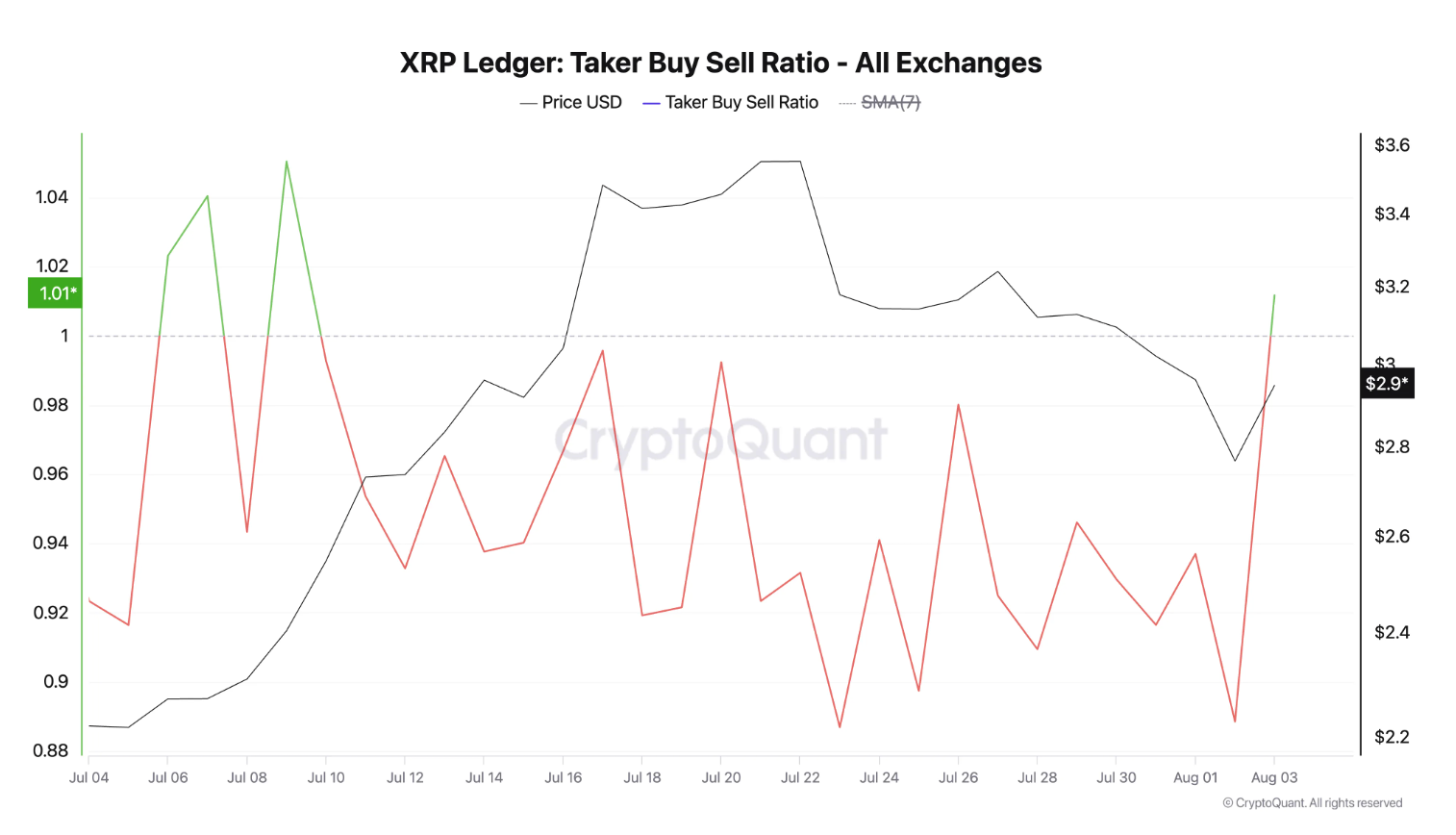 (XRP Taker соотношение лонгов и шортов | Источник: CryptoQuant)