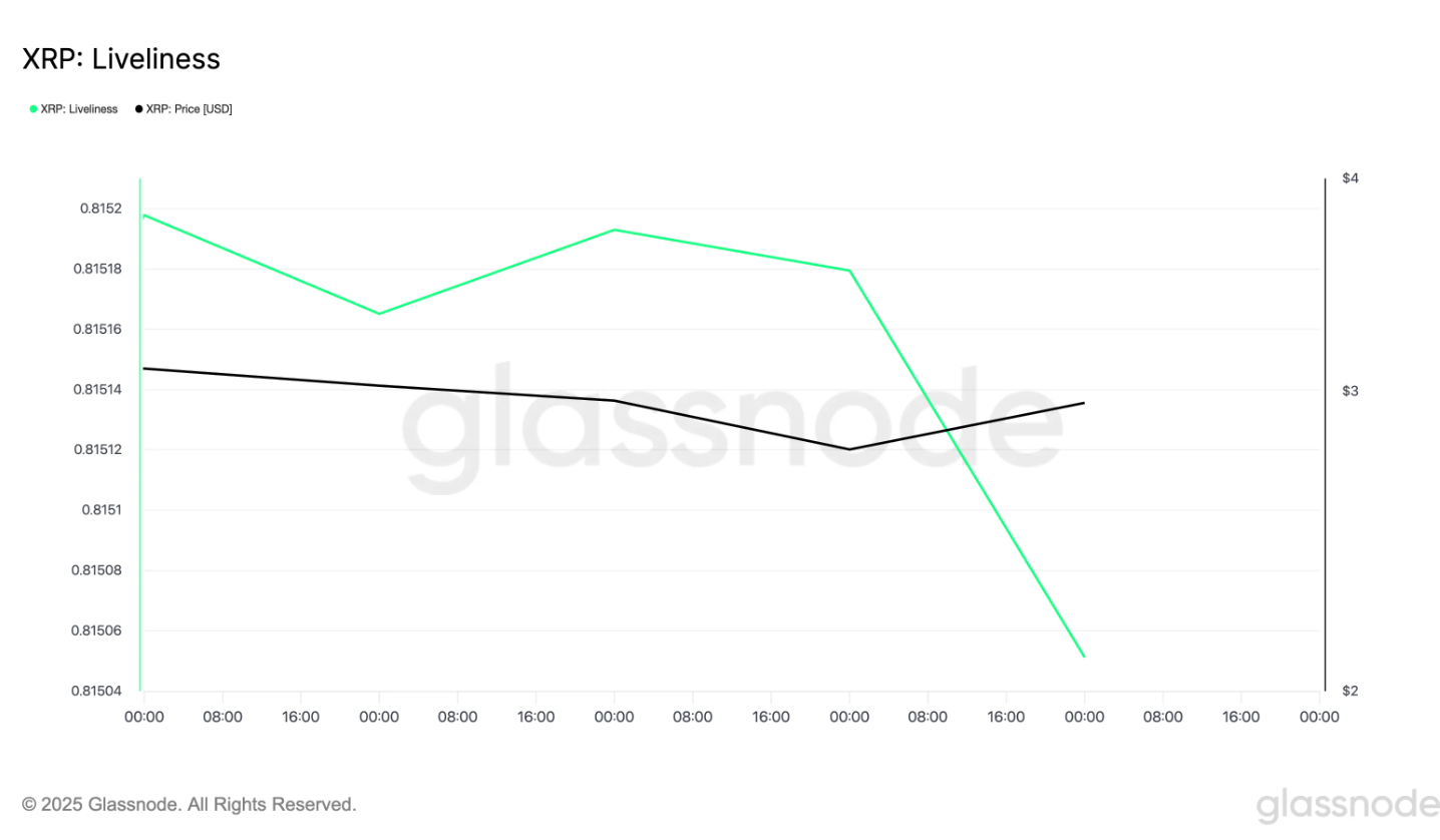 XRP за 24 часа вырос на 5%, временно избавившись от нисходящего давления на прошлой неделе. Данные в блокчейне показывают, что текущая отдача имеет специфическую поддержку активов: Соотношение лонгов и шортов (Taker Buy/Sell Ratio) впервые с 10 июля закрылось в положительной зоне, что указывает на значительное ослабление продаж на рынке производных; Активность держателей (Liveliness) продолжает снижаться с начала августа (3 августа составила 0,8150), что указывает на то, что долгосрочные держатели (LTH) завершили фиксацию прибыли и вернулись к накоплению (Accumulation Mode). Технический анализ показывает, что если XRP сможет удержаться выше психологической отметки в 3 доллара, он сможет атаковать уровень сопротивления в 3,22 доллара; в противном случае, если атака не удастся, возможно снижение к поддержке в 2,87 доллара.