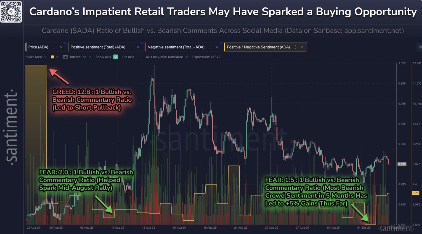 С Cardano разница между психологией толпы и текущей волатильностью цен может открыть возможность для крупных капиталовложений, особенно если розничные инвесторы продолжат отходить.