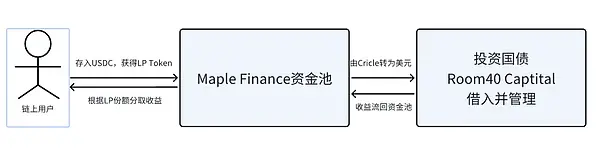 Инвестиции в государственные облигации: заимствованные USDC преобразуются через Circle в доллары США и инвестируются в государственные облигации. Room40 Capital как заемщик отвечает за управление государственными облигациями для получения дохода.