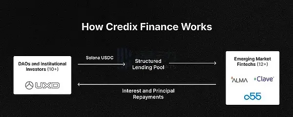 Credix Finance была основана в 2021 году и специализируется на частном кредитовании RWA. Логика Credix довольно проста, ее можно рассматривать как платформу кредитования, связывающую цепочку и реальность: заимствование USDC у пользователей цепочки, затем конвертация в местные валюты разных стран, одалживание различным типам заемщиков и предоставление дохода от кредитования пользователям цепочки.