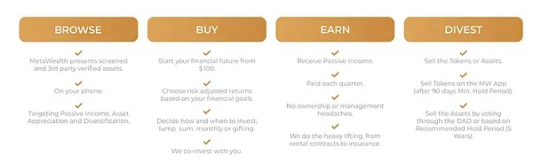 MetaWealth завершила аудит и исследование с третьей стороной, после чего приобрела и сдала в аренду соответствующую недвижимость. Одновременно право собственности на недвижимость будет фрагментировано, что позволит пользователям участвовать в инвестициях с минимальным порогом в 100 долларов и получать аренду в зависимости от доли их инвестиций в общую стоимость недвижимости.