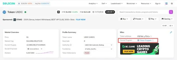 На странице USDC, несмотря на отсутствие отображения баланса SOL, поле «Owner Program» — это Token Program, что означает необходимость уплаты аренды.