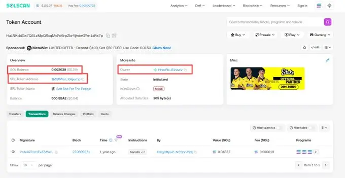 На изображении ниже в Solscan показан случай с токеном MEME SBAE, где баланс SOL 0.002039 — это и есть арендная плата.