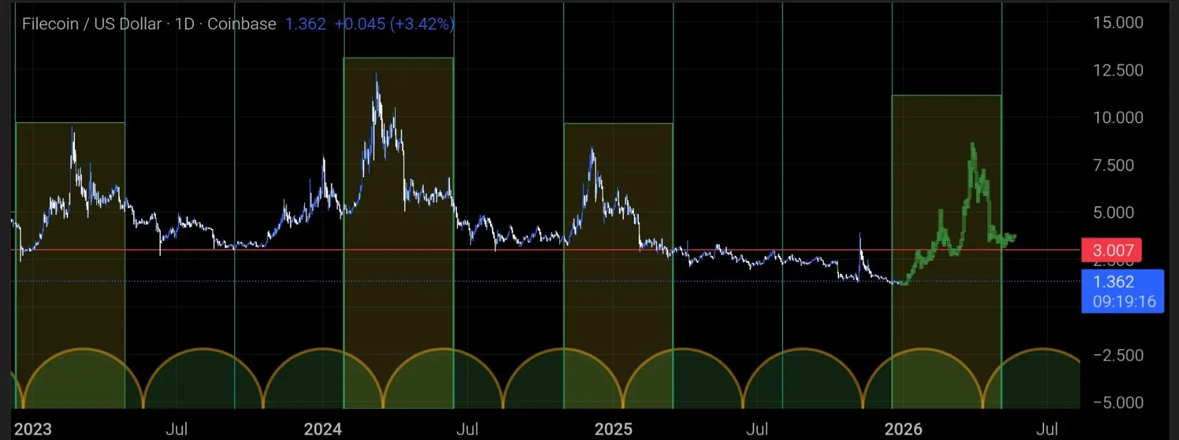 Источник: XVise стороны Filecoin, перспективы роста цены также привлекают внимание. За последнюю неделю FIL показал впечатляющий рост на 19,5%. Аналитик на X отметил, что FIL обычно демонстрирует сильные прорывы в первом квартале каждого года. Если эта историческая тенденция продолжится, возникает вопрос, до какой цены может дойти FIL и сможет ли он превзойти Chainlink в следующем цикле.