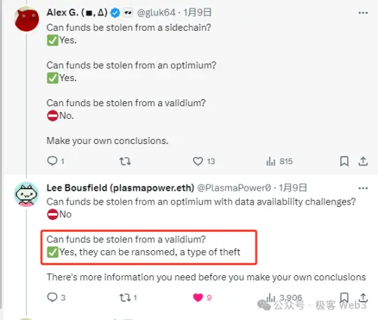 Кстати, как упоминалось ранее, Plasma, которая позволяет пользователям выводить деньги с помощью исторических данных за давние времена, не будет иметь «атак с целью выкупа», как Validium, и Plasma также является DA оффчейн (оффчейн DA+ ончейн верификация). доказательство мошенничества).