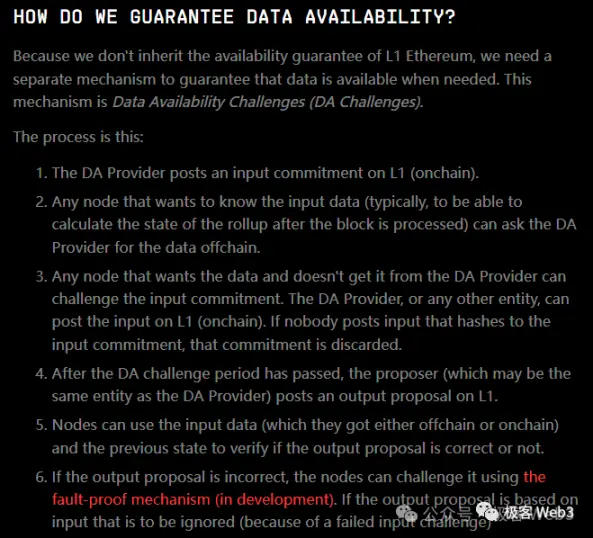 Во-вторых, если оставить в стороне Celestia и Blobstream, проблему сохранения данных/сбоев DA можно решить даже без использования ETH в качестве уровня DA. Давайте просто поговорим о «проблеме доступности данных», которую реализуют команды Arbitrum и Redstone, позволяя секвенатору публиковать только DA Commitment (на самом деле хэш данных) в цепочке, заявляя, что данные были выпущены из цепочки. Если кто-то не может получить вновь сгенерированные данные вне цепочки, он может оспорить обязательства DA в цепочке и потребовать от секвенатора раскрыть данные в цепочке.