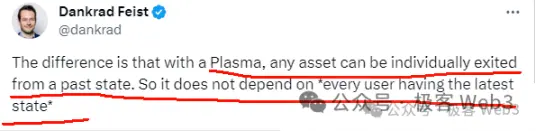 Во-вторых, «**Безопасный вывод средств без условий» не обязательно зависит от системы DA. **Раннее решение Layer2 до Rollup, Plasma, которое реализует выпуск данных DA в цепочке Ethereum, когда система DA выходит из строя (то есть происходит удержание данных, кроме секвенсора/комитета, никто другой не может получать новые данные транзакции/состояние информацию о переходе), также позволяет пользователям отправлять сертификаты активов на основе исторических данных и безопасно выходить из уровня 2.