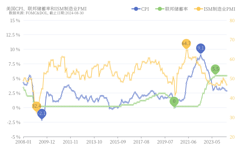 Индекс производственных цен (PPI) и индекс потребительских цен (CPI) взаимосвязаны. В августе американский PPI по сравнению с тем же периодом года памп-3,7%, что ниже ожидаемых -3,6% и предыдущих -0,8%, что свидетельствует о некотором смягчении инфляционных давлений на производственной стороне. Индекс деловой активности закупок (PMI) в качестве ведущего экономического индикатора для производственного сектора в США в августе составил 47,0, что ниже ожидаемых 49,0 и предыдущих 49,3, что свидетельствует о усилении сокращения производственного сектора. Первоначальное значение PMI для сферы услуг составило 51,5, что выше ожидаемых 51,0, но ниже предыдущих 52,3, что указывает на замедление роста в сфере услуг.