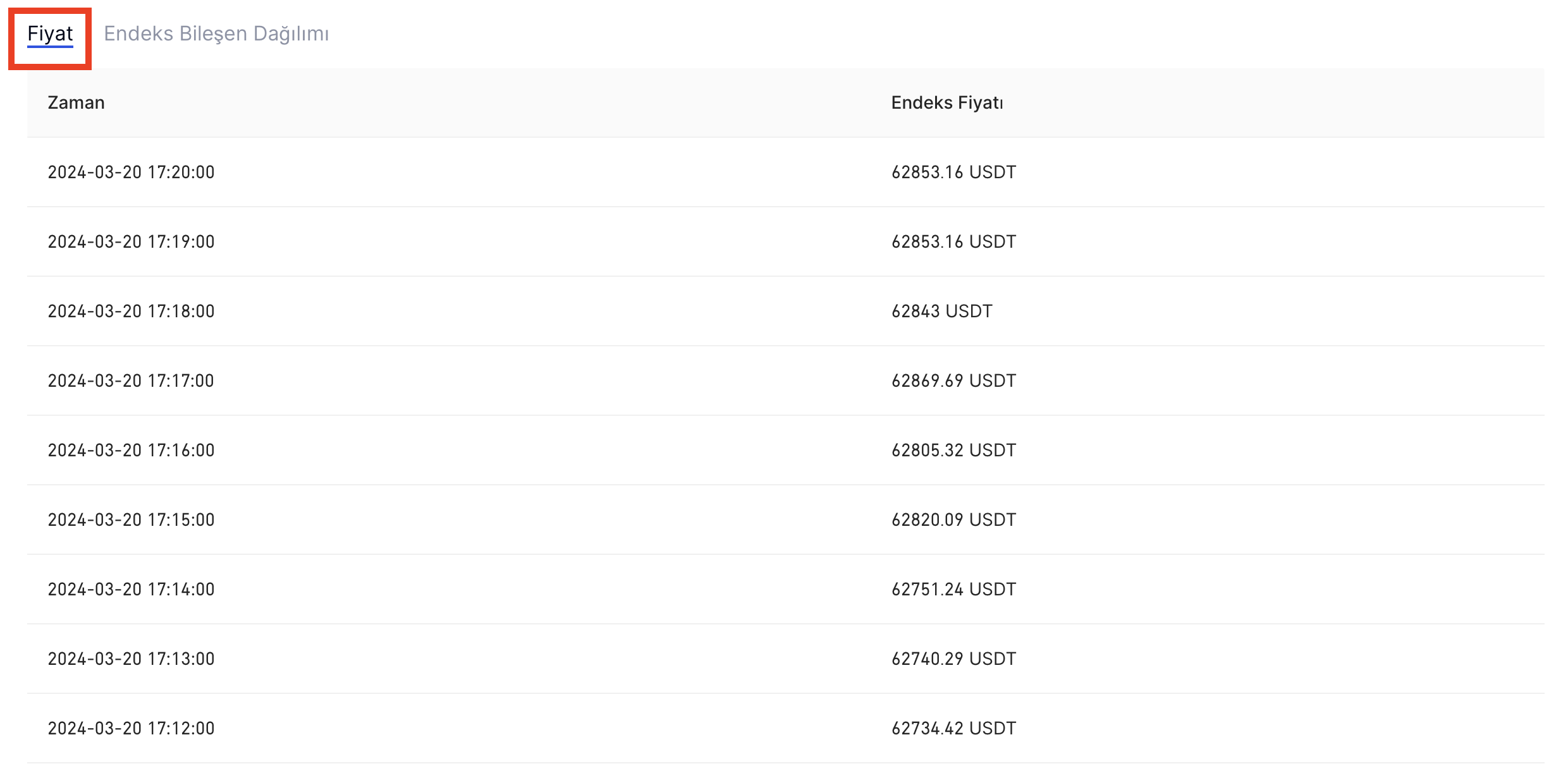 BTC_USDT örneğini alırsak, bu işlem çiftinin endeks fiyatı dört borsadan gelir: Binance, Huobi, Bybit, Gate ve OKX. Dört borsadan birinin son spot fiyatı diğerlerinden büyük ölçüde saparsa, trading çiftinin endeks fiyatı etkilenecek ve sapacaktır.
