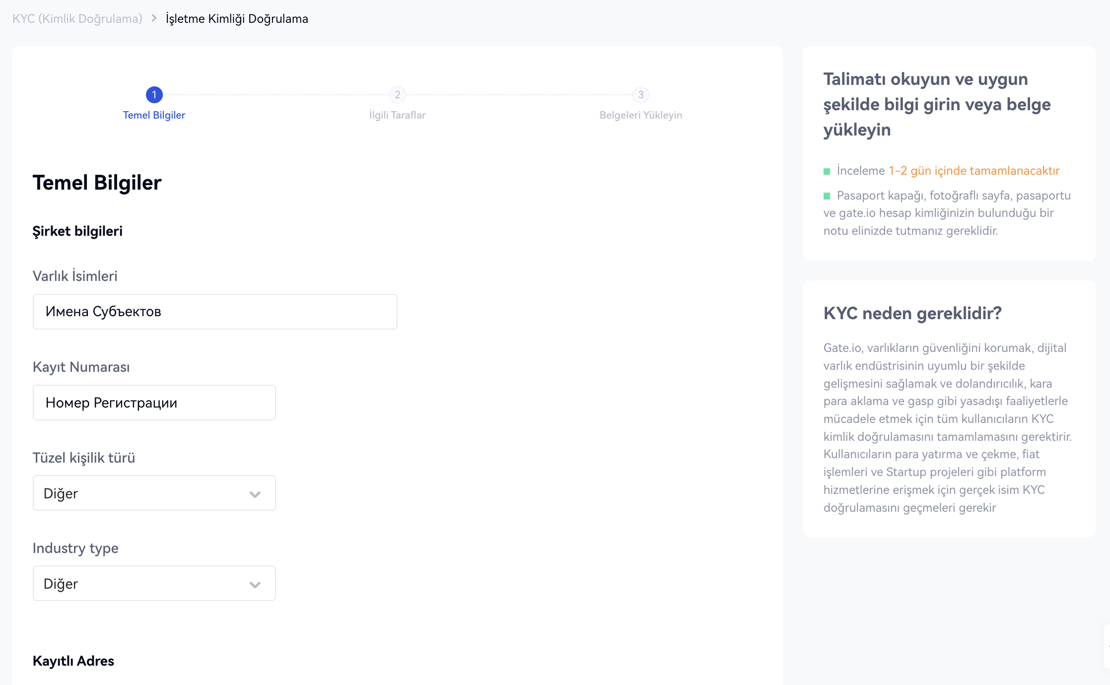 1.İşletme kimliği doğrulaması için kurumsal temel bilgiler, şirket temsilcisi bilgileri, ilgili belgeler ve şirket yetkili temsilcisine ilişkin bilgiler istenir. Lütfen kutuları doldurmadan ve dosyaları yüklemeden önce talimatları dikkatlice okuyun.