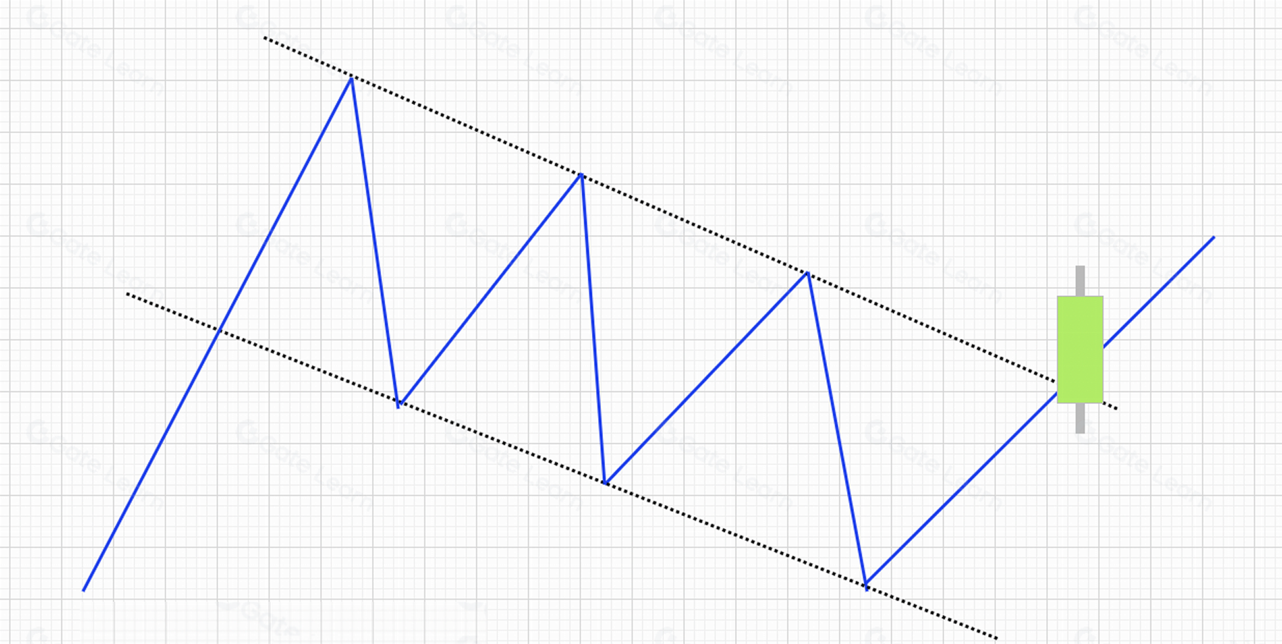A bullish flag signals a potential continuation of the uptrend once price breaks above the upper boundary—this is generally interpreted as a buy signal.