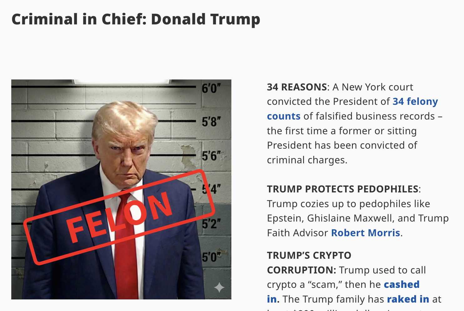Image source: Gavin Newsom Newsom states in the website introduction that Trump “is himself a felon and has chosen to associate with fraudsters and drug dealers.”