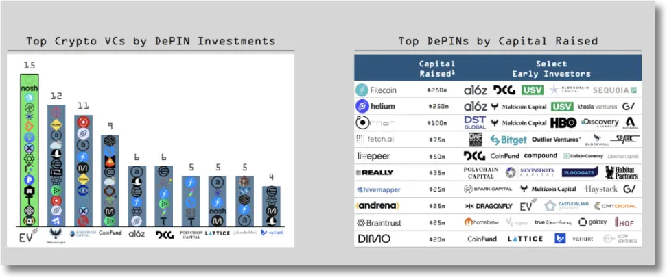 Use cases and scenarios connect to the real world. DePIN seems to be easier for ordinary users to understand and experience than Web3 applications such as DeFi, GameFi, and SocialFi, and it can build business models without relying on the common pure financial gameplay of Web3. Capital has seen room for growth in the DePIN track, and approximately US$10 billion in venture capital has poured into the top 10 DePIN projects by market value.