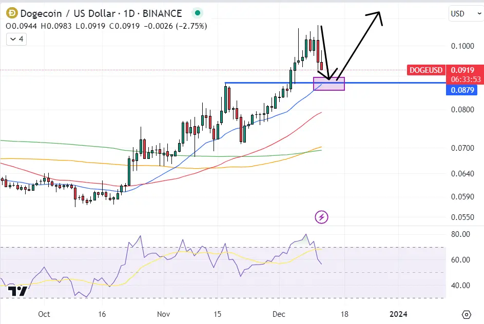$0.0875 is a good area of price support for DOGE, with the 21DMA and November high coinciding nicely.