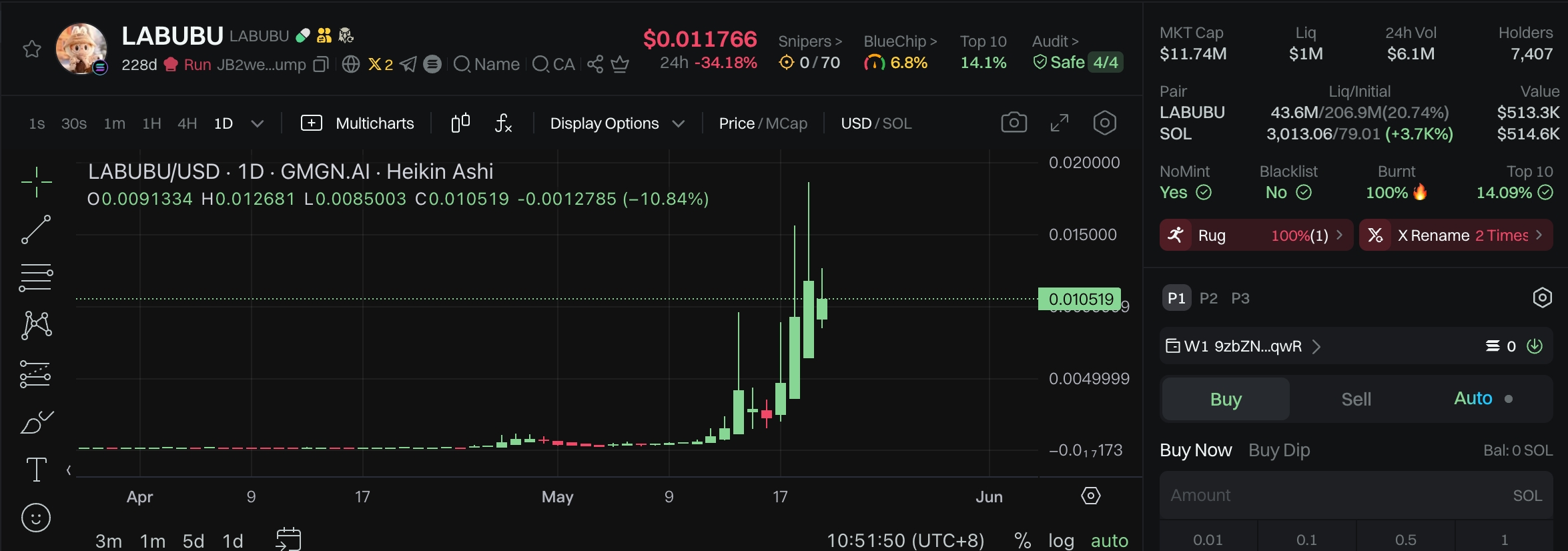 Gate News bot повідомлення, нещодавно, MEME монета $LABUBU через потужний вихід нової серії продукції Labubu третього покоління, підтримку KOL та стрімке зростання популярності IP у Південно-Східній Азії, стала центром уваги ринку. Згідно з даними GMGN, ринкова капіталізація $LABUBU за останній тиждень зросла з десятків тисяч доларів до 11 мільйонів доларів, великий памп в десятки разів, обсяг торгів за 24 години склав 6,1 мільйона доларів. Дані Holderscan показують, що з 14 травня кількість адрес, що утримують монету, продовжує зростати, участь користувачів та ринковий ентузіазм швидко зростають.