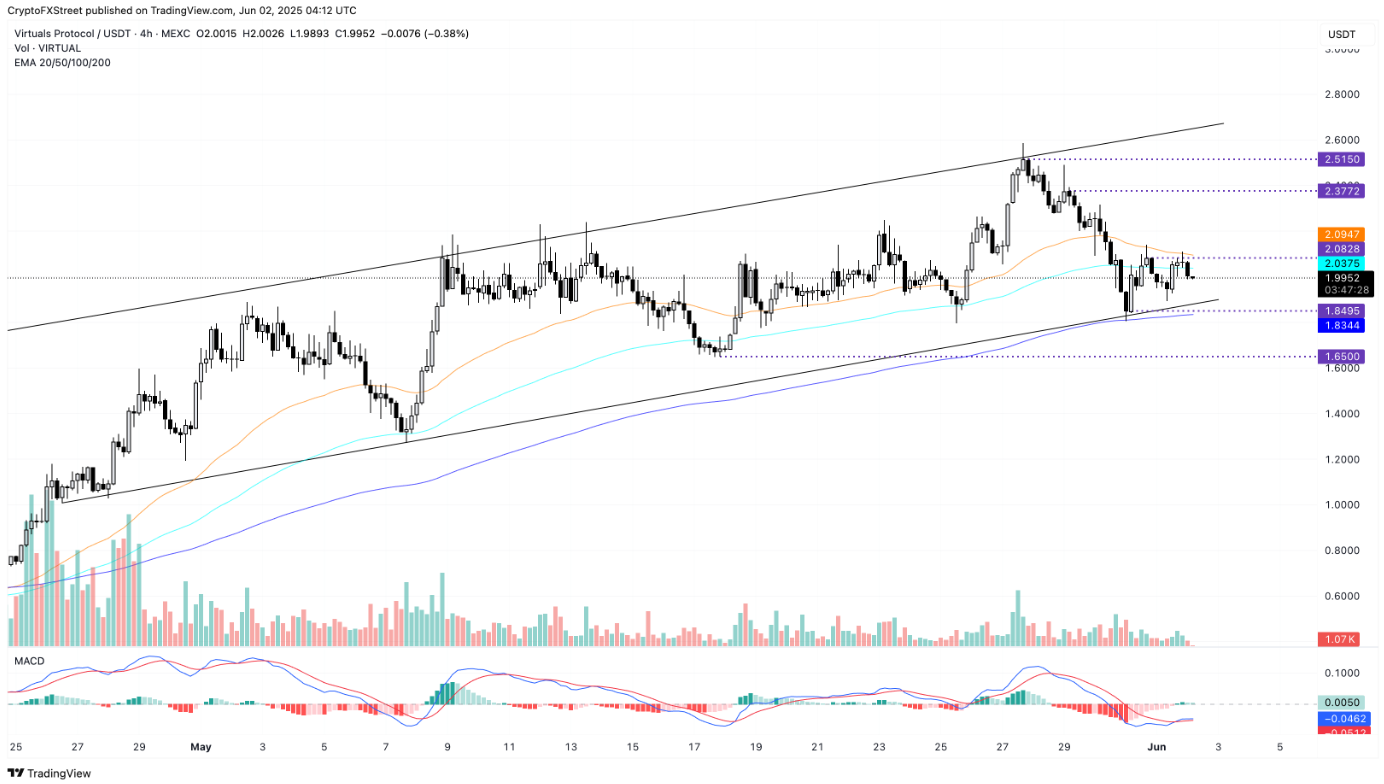 ! 4 4-годинний графік VIRTUAL/USDT | Джерело: TradingView, Якщо вдасться успішно пробити 50-періодну EMA, ціна може попрямувати до наступної зони опору в районі піку в 2,37 долара, встановленого 29 травня.