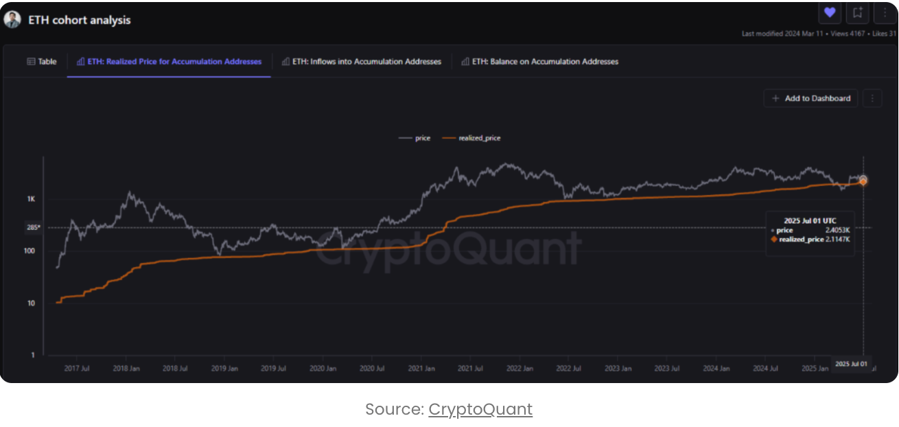 Варто підкреслити, що станом на 1 липня, ціна реалізації ETH (тобто середня вартість утримання) для цих адрес накопичення становила 2114 доларів. З огляду на те, що на момент написання ETH торгується за 2593 долари, ці адреси накопичення наразі мають близько 22,65% здорового плаваючого прибутку ETH.