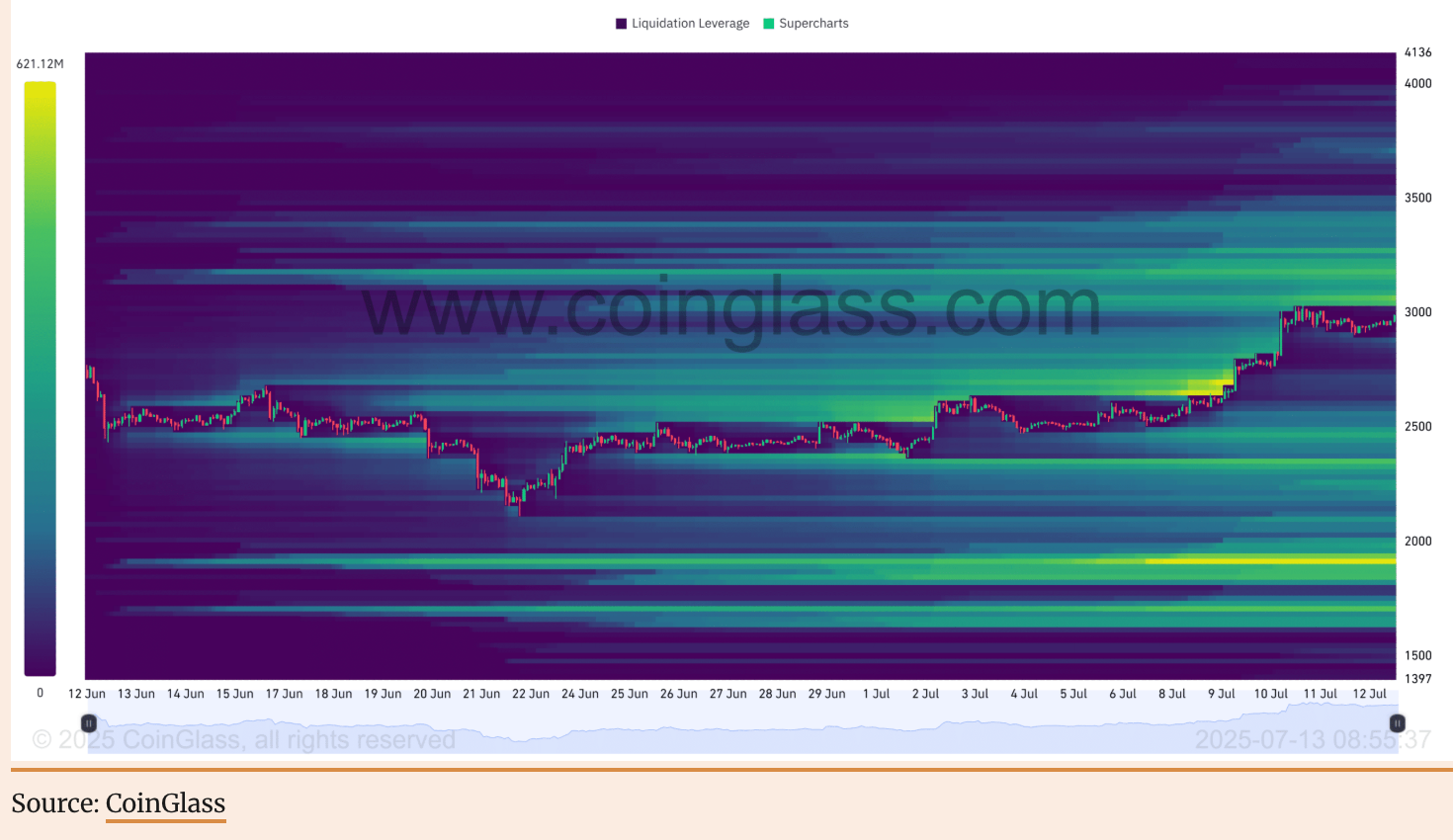 Посібник по тепловій карті ліквідності: ціль вище $3,000 чітка, повернення до підтримки є можливістю