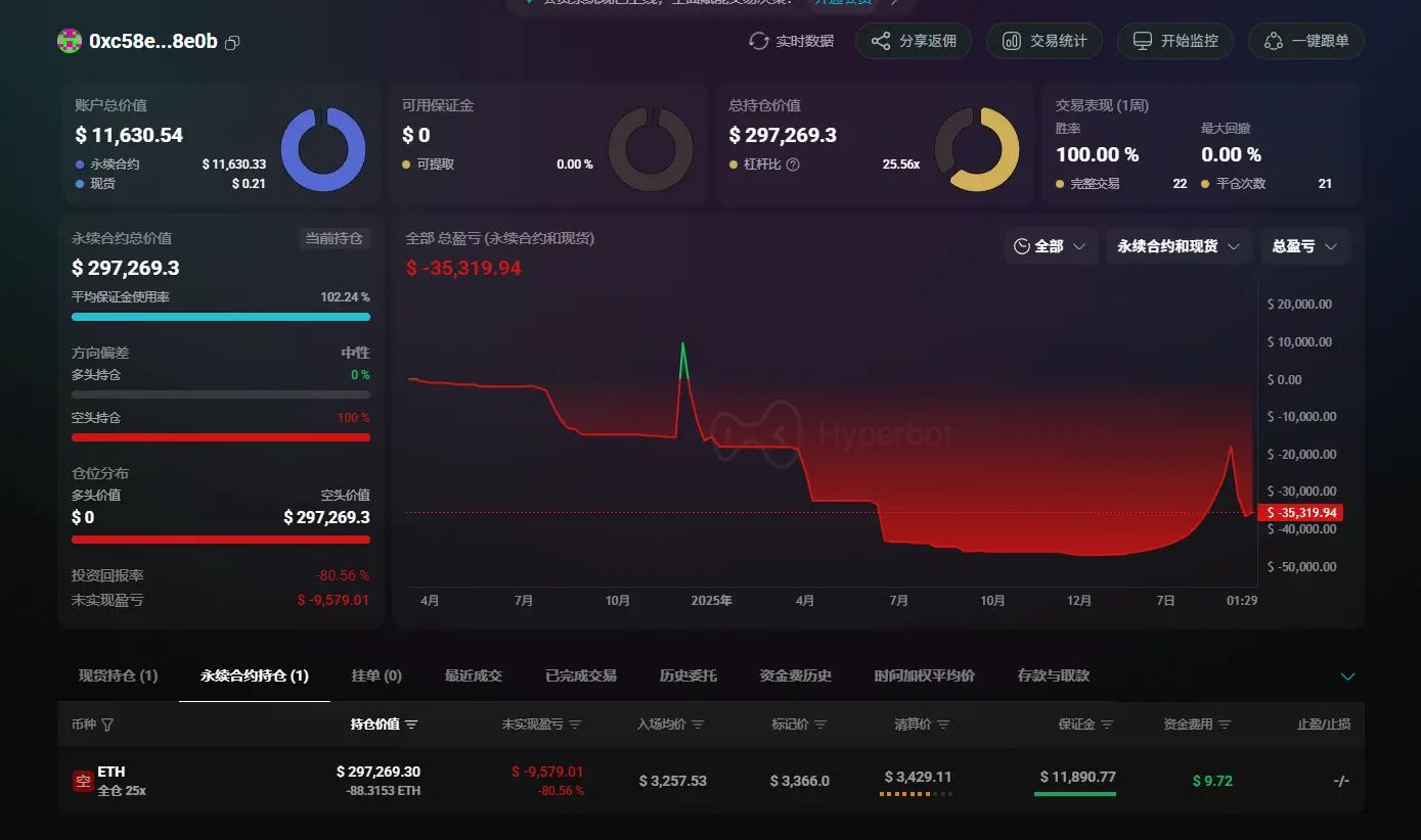 Після входу в угоду з Hyperliquid збитки Brother Maji наразі досягли $46,5 мільйона. Він також може займати перше місце у всьому списку збитків для торгівлі Hyperliquid. Судячи з портрета стилю торгівлі, Маджі демонструє типові риси високого відсотка перемог і низького співвідношення прибутку та збитків. Його загальний відсоток перемог досяг 77%, але співвідношення прибутку та збитків — 1:8,6, а за часом утримання середній час позицій для прибуткових ордерів становив 31 годину, а середня позиція програшних ордерів — 109 годин. Це свідчить про те, що він більше схильний піти з певним прибутком, але при збитковому ринку часто обирає зберігати замовлення до великої втрати або ліквідації.
