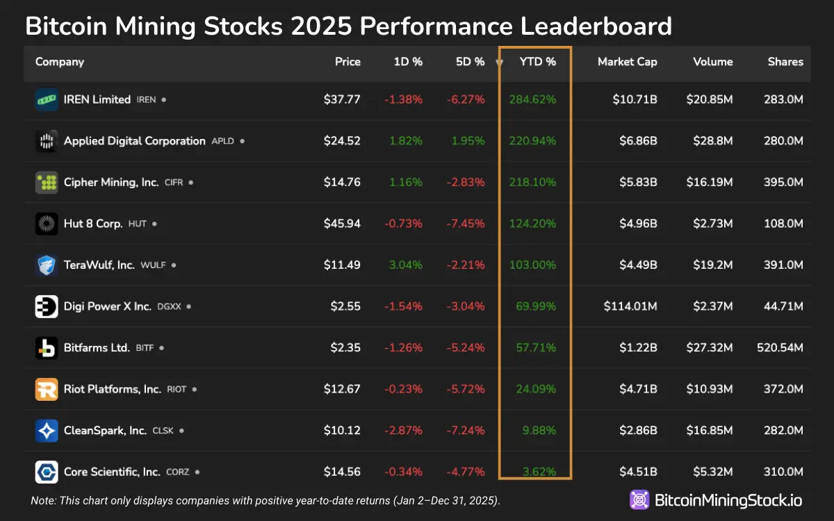 2025 Результати акцій майнінгу Біткоїна: чіткий ринковий пріоритет