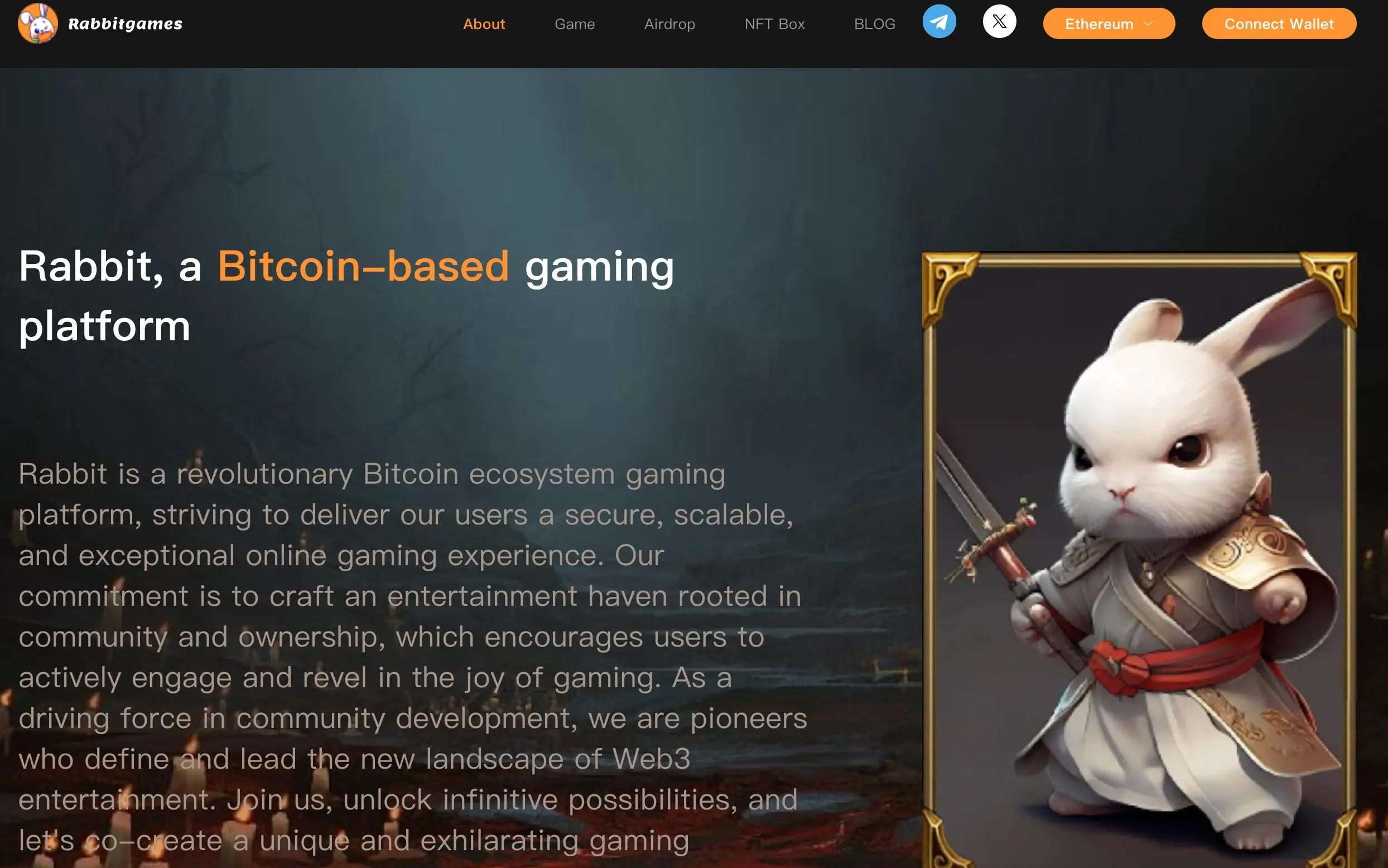 Згідно з офіційним веб-сайтом, Rabbit стверджує, що є ігровою платформою екосистеми біткойнів, яка прагне надавати користувачам безпечні, масштабовані та чудові онлайн-ігри. На платформі Rabbit є багато ігор: Block Game, Space Dominion, Rainbow Garden Adventure і Realm Awakening. Зараз у Rabbit 86 000 підписників на платформі X.