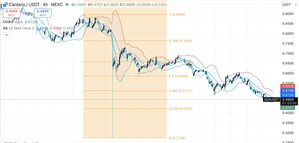ADA бореться нижче $0.4689, оскільки нижчі максимуми підтверджують постійний тиск продажу.
