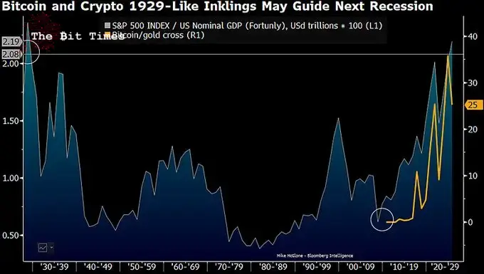 Nhà chiến lược của Bloomberg Intelligence, Mike McGlone, đã cảnh báo rằng sức bền của Bitcoin (BTC) có thể là yếu tố chính ngăn chặn sự sụp đổ của thị trường chứng khoán Mỹ tương tự như các đợt suy thoái giảm phát trong quá khứ.