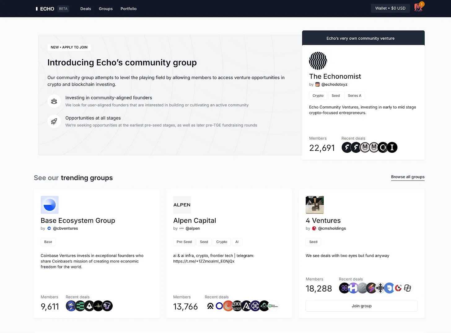 Sonar là nền tảng khởi động công khai được phát triển bởi nền tảng đầu tư liên kết Echo. Echo tự nó áp dụng chế độ vận hành đóng chỉ dành cho những người được mời. Ngoài việc xác thực KYC, nền tảng này còn thực hiện kiểm tra sàng lọc nghiêm ngặt đối với người tham gia dựa trên kinh nghiệm đầu tư và khả năng đầu tư. Điều này khiến nó trở thành một nền tảng chỉ dành cho nhà đầu tư chuyên nghiệp. Cấu trúc đóng này tạo ra rào cản gia nhập rất cao cho các nhà đầu tư cá nhân. Sự ra đời của Sonar chính là để lấp đầy khoảng trống này, nó theo đuổi một mô hình bán token mở hơn.