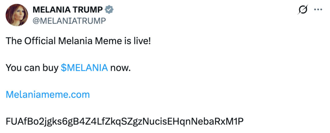 Đầu năm, việc tổng thống Mỹ mới đắc cử Trump phát hành Meme coin TRUMP đã trở thành chuyện ai cũng biết, sau đó phu nhân Melania của Trump và Tổng thống Argentina Messi lần lượt trên mạng xã hội cá nhân vào ngày 20 tháng 1 và 15 tháng 2 năm 2025 tại giờ Bắc Kinh đã tuyên truyền về MELANIA và token LIBRA liên quan đến họ(Các tweet của Messi đã bị xóa).
