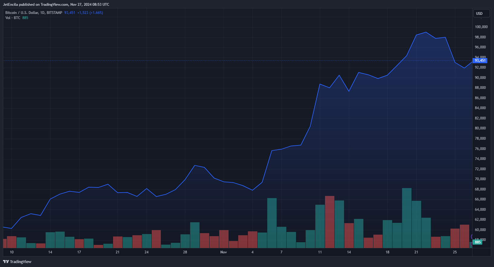 Bitcoin hiện đang giao dịch ở mức $93,451. Biểu đồ: TradingView### Có cần lo lắng không?