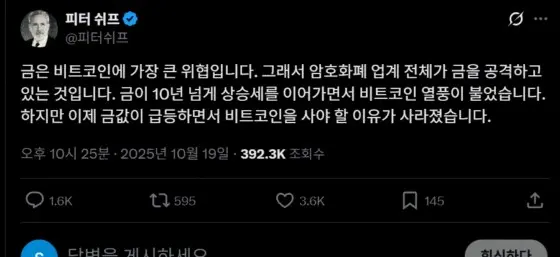 Peter Schiff đã tuyên bố trong một bài đăng trên X vào ngày 19 rằng, “Vàng là mối đe dọa lớn nhất đối với Bitcoin. Đó là lý do tại sao toàn bộ ngành công nghiệp tiền điện tử đang tấn công vàng.” Ông thêm rằng, “Cơn sốt Bitcoin đã tiếp tục khi vàng đang có xu hướng tăng trong hơn 10 năm. Tuy nhiên, bây giờ khi giá vàng đang tăng vọt, không có lý do gì để mua Bitcoin.”