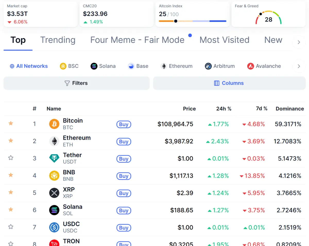 Thị trường tài sản kỹ thuật số của New York đã phục hồi vào ngày 19 tháng 10 ( theo giờ địa phương ) sau một sự sụt giảm mạnh trong giờ giao dịch. Bitcoin đã giảm xuống còn 107.400 đô la vào một thời điểm, nhưng đã phục hồi lên 108.964 đô la ngay sau khi Tổng thống Mỹ Donald Trump chính thức công bố một cuộc họp thượng đỉnh APEC với Chủ tịch Trung Quốc Tập Cận Bình. Các đồng altcoin lớn cũng đã tăng trở lại trên toàn thị trường, tổ chức một cuộc biểu tình cứu trợ ngắn hạn. Sự thống trị của Bitcoin đã tăng lên 59,3%, trong khi sự thống trị của Ethereum đứng ở mức 12,7%.
