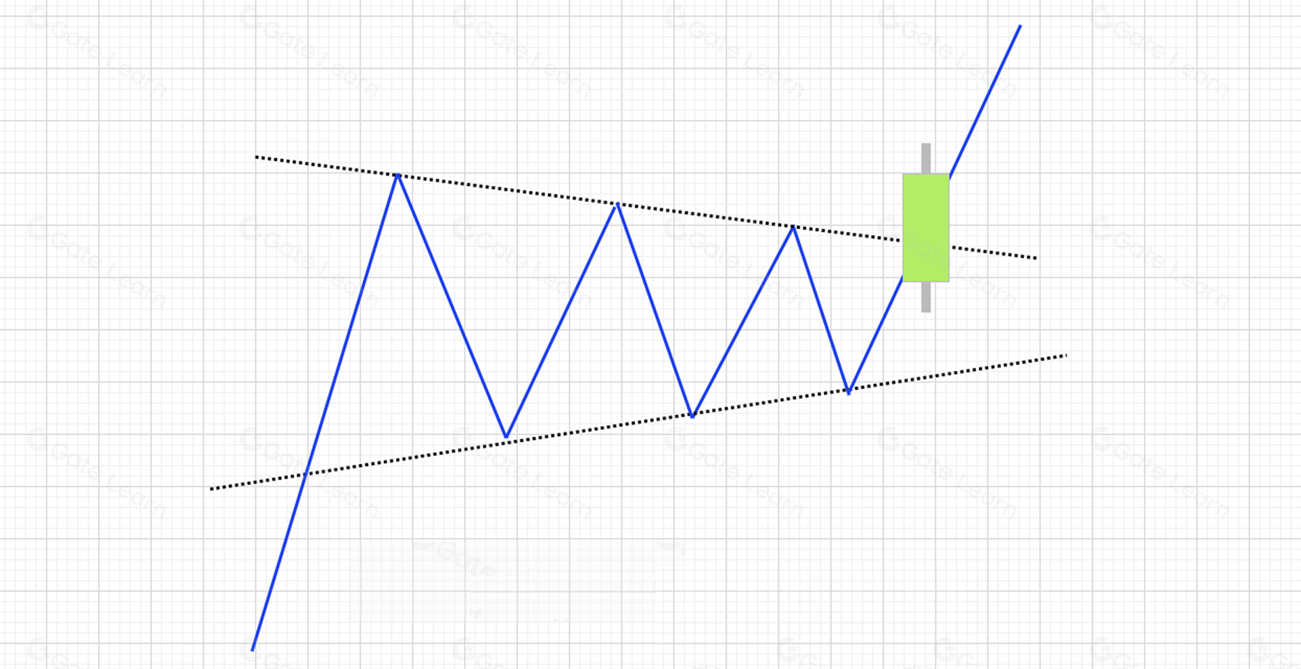 在實盤操作中,楔形、旗形與三角形的交易原則一致:價格突破上軌(尤其伴隨成交量放大)偏向看多,適合做多;價格跌破下軌則偏向看空或離場。
