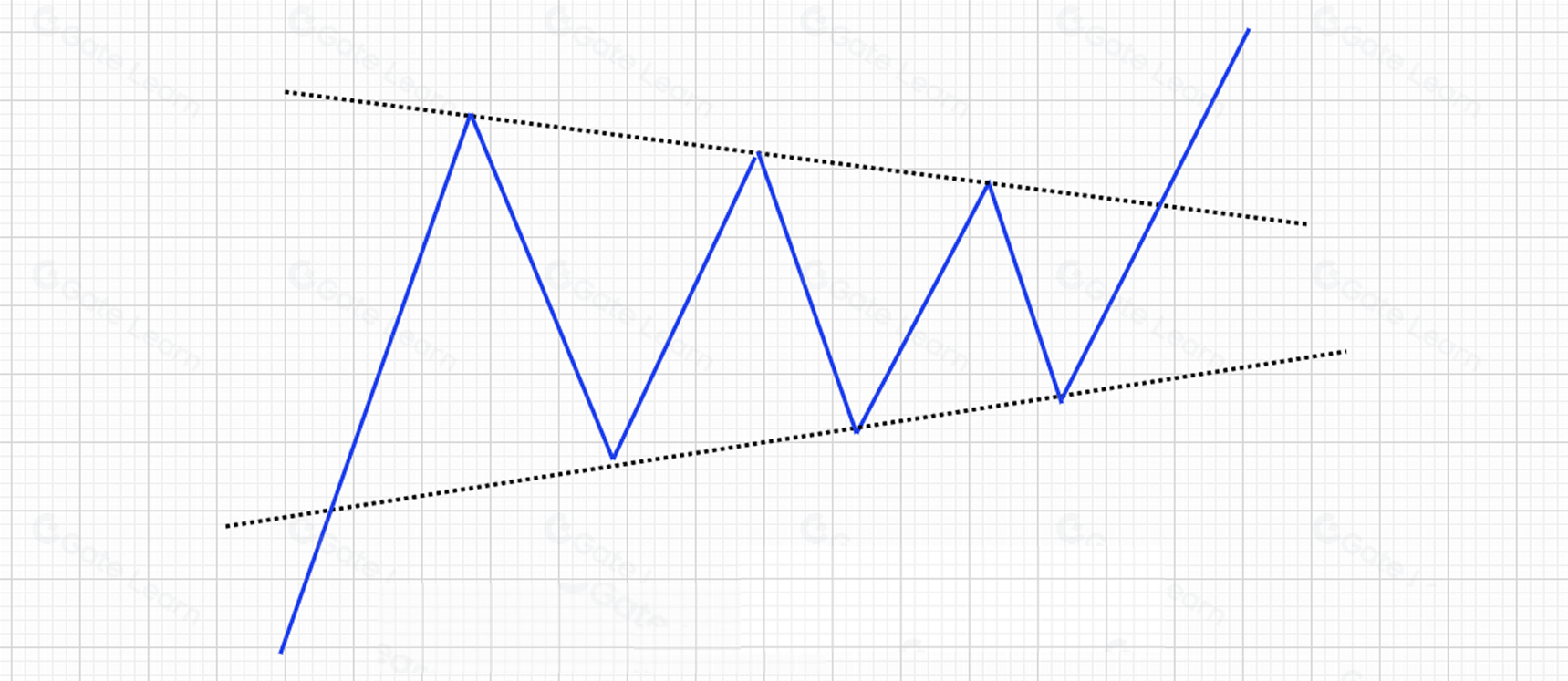 從幾何角度來看,楔形也是三角形的一種。不過與一般三角形不同,楔形的兩條趨勢線方向相同——要嘛都向上,要嘛都向下。