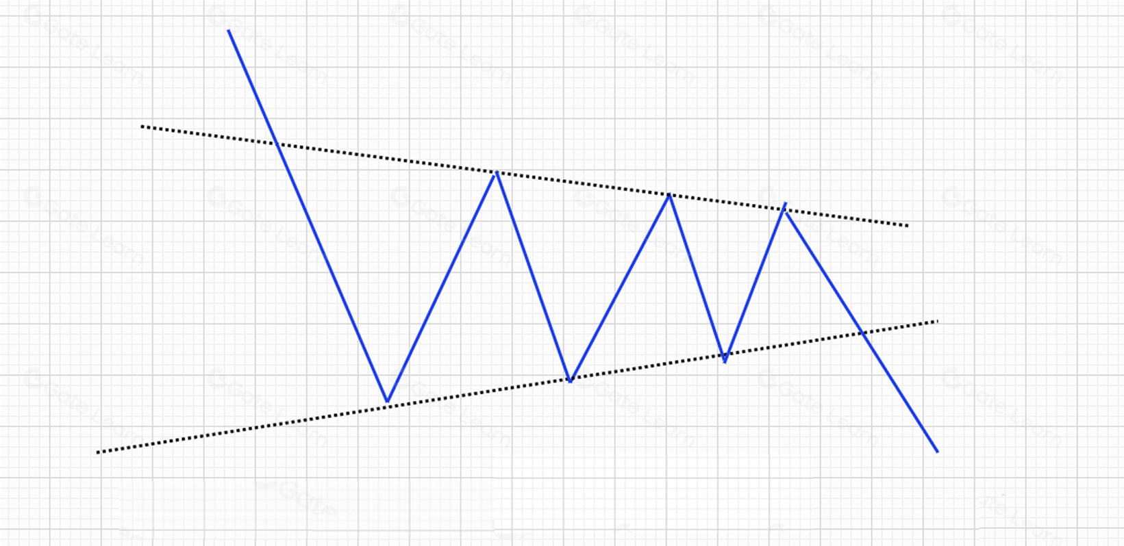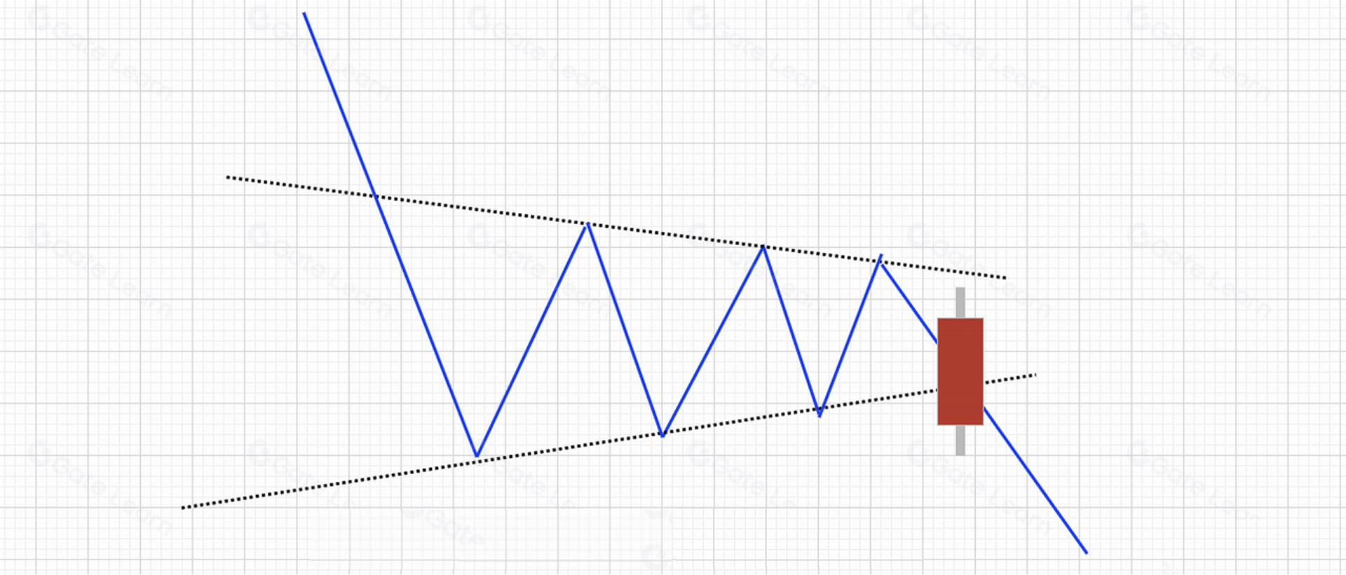 當價格跌破下方趨勢線時,預示市場偏空,適合離場或做空。