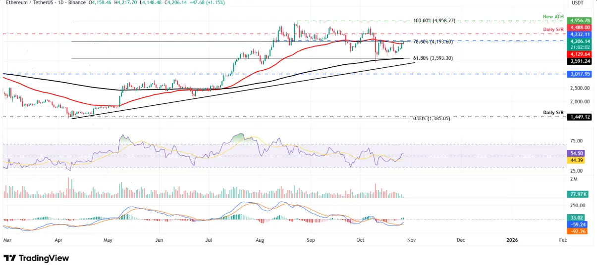 如果能夠突破並保持在重要阻力位4,232美元以上收盤,以太坊很可能會向更高的目標4,488美元推進。