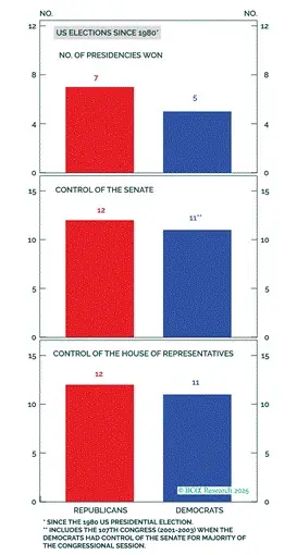 这一策略是否正确,西德克萨斯中质原油(WTI)和布伦特原油市场将给出答案。随着名义GDP和美元信贷供应的增加,油价是上涨还是下跌?如果GDP和油价同步上涨,蓝营民主党将获胜;如果GDP上涨而油价持平或下跌,红营共和党将获胜。