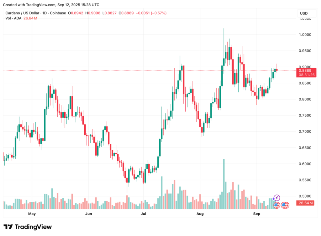 尽管Cardano价格在$0.88左右保持稳定,分析师警告称,长期压力可能导致2026年出现大幅降低。
