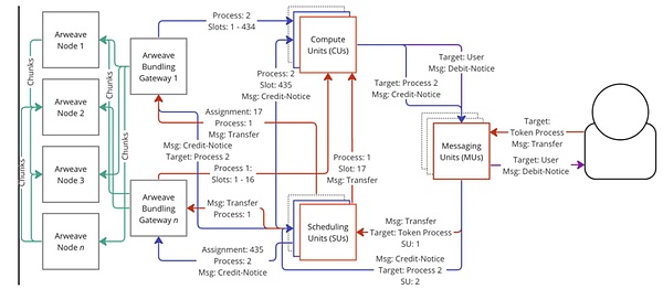 信使单元(MU)接收与转发:信使单元(MU)负责接收用户或进程生成的消息,将其中继到网络内的适当 SU 节点。MU 会管理消息的路由,确保它们能够准确无误地到达 SU:在这个过程中 MU 会对消息进行数字签名,以保证数据的完整性。