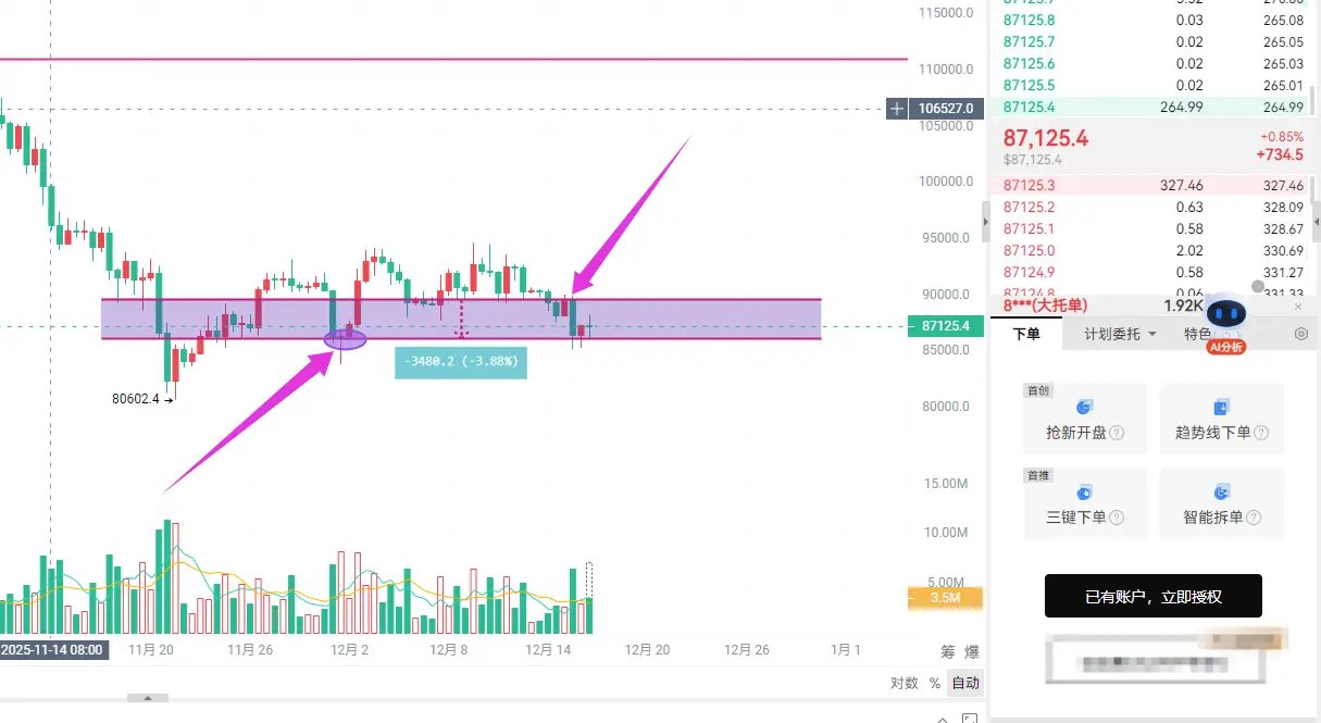 复盘:当地时间周二(12月16日),美国劳工统计局发布报告称,11月的美国非农就业人数略高于预期。美联储将在明年1月举行2026年首次议息会议。市场普遍预期,美联储继续降息的概率不大。非农数据公布后,大饼迅速下跌,最低下探至86000一线,以太坊最低下探至2880.